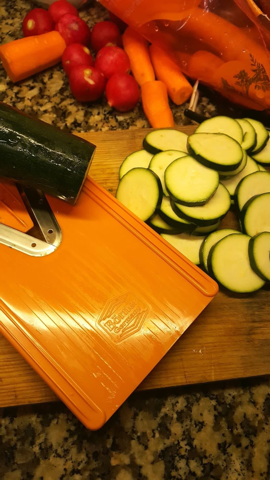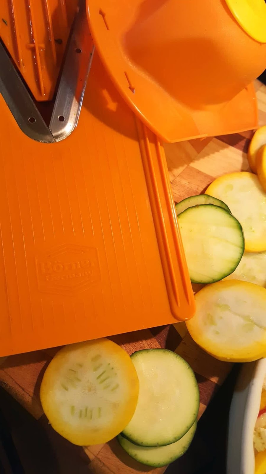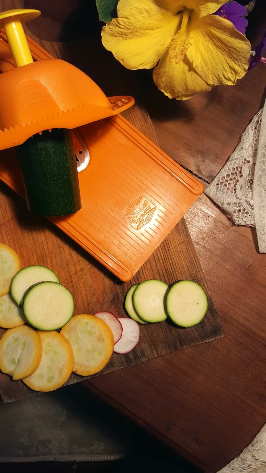 Este é um prato saudável, saboroso e super rápido de confecionar, principalmente com a ajuda da mandolina da Borner. Poderão consultar aqui as características específicas da mandolina que utilizo ou outros cortadores da Borner. E esta é outra história – a história dos equipamentos que nos ajudam a criar momentos de partilha e degustação em nossas casas a cada refeição.