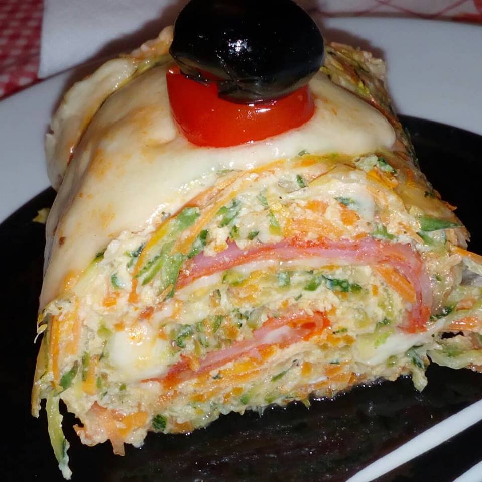 - Enrola-se enfeita-se com queijo mozzarela e tomate cherry e leva-se ao forno mais um pouco para derreter o queijo e corar um pouco.